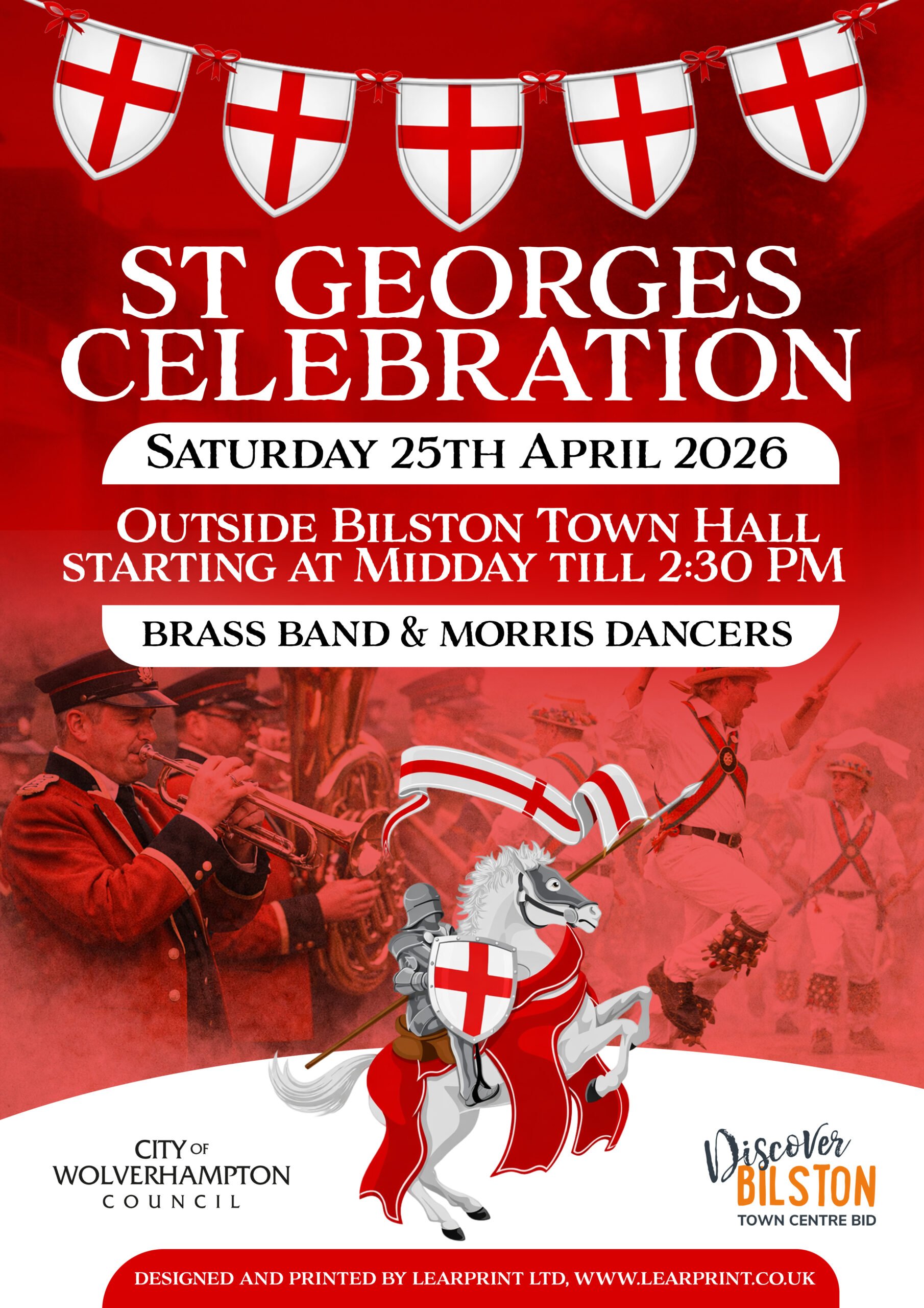 Bilston is coming together to celebrate St George’s Day with a proper community gathering in the heart of the town. Join us outside Bilston Town Hall for an afternoon filled with tradition, music, and local pride as we mark the occasion in true English style.